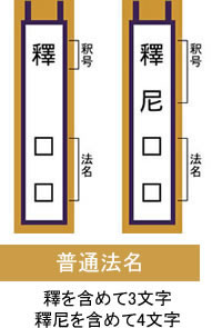 ・釋(しゃく)/釋尼(しゃくに)・・・浄土真宗の一般的な法名。