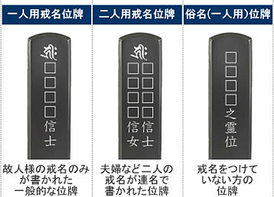 ● 位牌の書き方は地域、宗派、寺院により違いがあります。