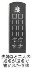 ※文字入れ1名様追加の場合は別途3,000円(税込)となります(お一人分は無料です)。夫婦位牌は基本的に右側が男性、左側が女性となります。